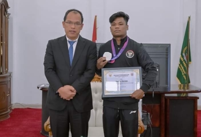 Bupati Humbahas mengucapkan selamat kepada Samuel Marbun karena berhasil meraih Medali Perak dalam asean games ke XIX di Hangzchou Cina. Kiranya pada pertandingan kejuaraan berikutnya dapat meraih emas. “Dalam pertandingan berikutnya, agar selalu persiapkan mental, fisik dan jaga kesehatan serta berlatih terus menerus dan jangan lupa juga berdoa” harap Bupati Humbahas. Sebagai tanda dukungan, Bupati Humbahas memberikan piagam penghargaan dan uang pembinaan.