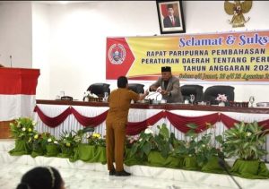 IDN Hari Ini, Humbang Hasundutan-Bupati Humbang Hasundutan yang diwakili Asisten Pemerintahan dan Kesra Jaulim Simanullang menyampaikan Nota Pengantar Keuangan Rancangan Peraturan Daerah (Ranperda) PAPBD Tahun Anggaran (T.A) 2024 pada Rapat Paripurna DPRD di Ruang Rapat Paripurna DPRD Kabupaten Husundutan,Selasa (20/8/ 2024).
