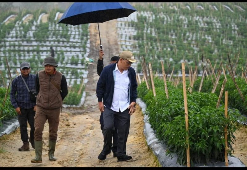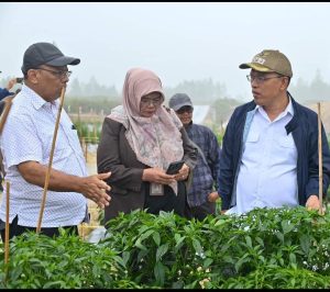 Direktur Perlindungan Perkebunan dan Kepala Balai Penerapan Standard Instrumen Pertanian didampingi Bupati Humbahas meninjau penanaman kentang, bawang merah dan cabai yang ada di area lokasi Food Estate Desa Hutajulu hingga area lokasi Food Estate yang berada di Desa Riaria Kecamatan Pollung.