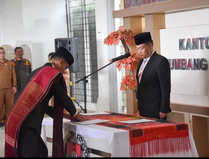 IDN Hari Ini,Humbang Hasundutan-Bupati Humbahas Dr Oloan P Nababan SH MH melaksanakan pengambilan sumpah/janji dan pelantikan pejabat Administrator, Pengawas, tugas tambahan Kepala UPTD Puskesmas dan Fungsional di Lingkungan Pemerintah Kabupaten Humbahas, Selasa 12 Agustus 2025 di Kantor Bupati Humbahas Bukit Inspirasi Doloksanggul.