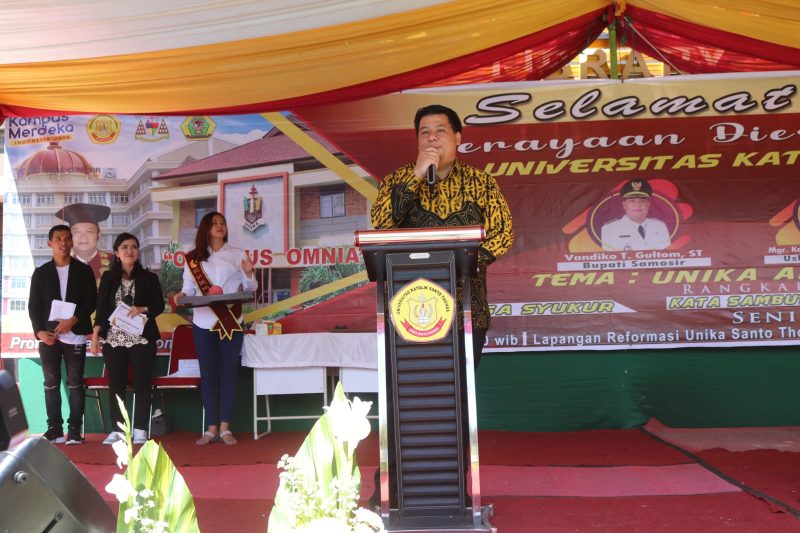 Bupati Samosir Vandiko Timotius Gultom, dalam sambutannya dihadapan seluruh mahasiswa, dosen dan para undangan, mengucapkan Selamat atas Perayaan Dies Natalis Unika St. Thomas Medan yang ke-39, semoga Unika dapat menjadi kampus terbaik dan terdepan di Sumatera Utara.