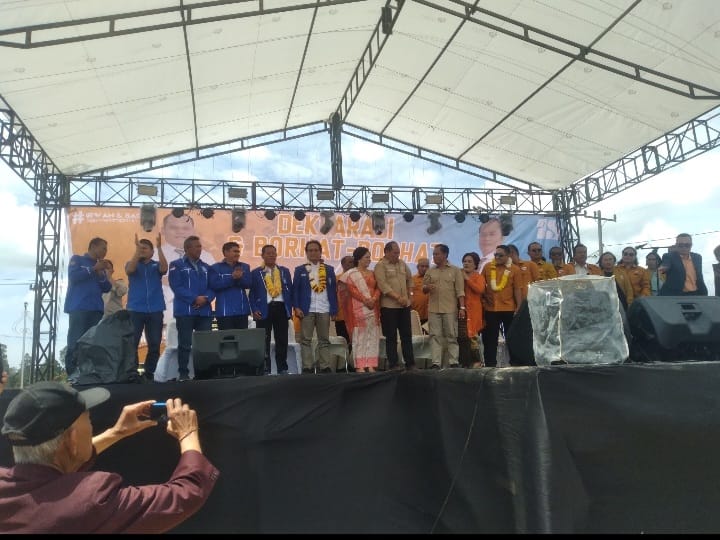 Deklarasi pasangan Calon Bupati dan Calon Wakil Bupati diadakan pada hari ini di pelataran Desa Sosorgonting dolok sanggul humbagas, Sabtu (20/7/2024).