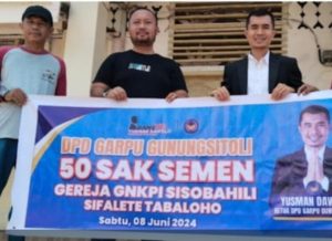 IDN Hari Ini, Gunungsitoli-DPD Gerankan Restorasi Pedagang dan UMKM (GARPU) Kota kembali memberikan bantuan di tempat ibadah, kali ini Ketua DPD GARPU, Yusman Dawolo memberikan bantuan 50 sak semen di Gereja Niha Keriso Protestan Indonesia (GNKPI) Jemaat Sisobahili Sifalaete Kota Gunungsitoli untuk mendukung pembangunan Turap.