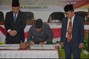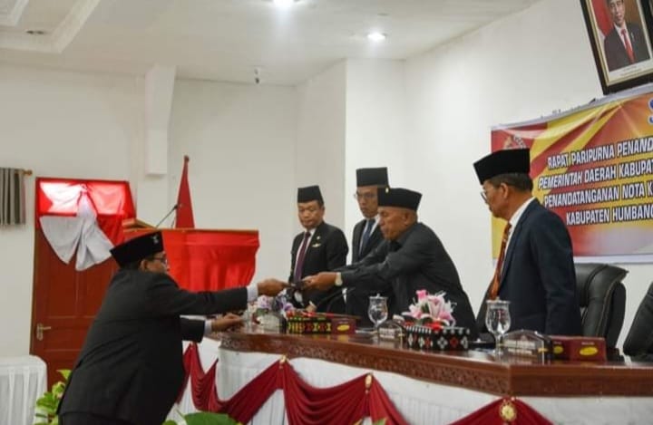 IDN Hari Ini, Humbang Hasundutan -Dewan Perwakilan Rakyat Daerah (DPRD) Kabupaten Humbang Hasundutan (Humbahas) melaksanakan Paripurna DPRD dalam rangka Penandatanganan Nota Kesepakatan Kebijakan Umum Anggaran (KUA) dan Prioritas dan Plafon Anggaran Sementara (PPAS) Kabupaten Humbang Hasundutan Tahun Anggaran 2025 dan Perubahan Kebijakan Umum Anggaran (Perubahan KUA) Dan Perubahan Prioritas Dan Plafon Anggaran Sementara (Perubahan PPAS) Kabupaten Humbang Hasundutan Tahun Anggaran 2024, Jumat (16/8/2024) di Gedung DPRD Kabupaten Humbang Hasundutan.