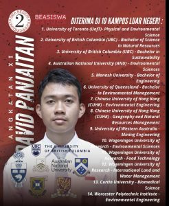 David Rafael menyatakan rasa syukur atas pencapaiannya dan memilih melanjutkan studi di University of British Columbia (UBC), Kanada pada program Bachelor in Sustainability dengan Beasiswa Garuda dari Kemendikbudristek.