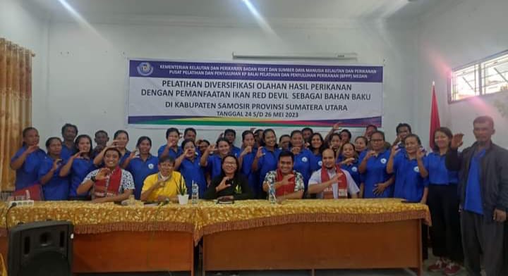 “Melalui pelatihan ini, nelayan di Kabupaten Samosir sudah dapat membuat Surimi, Mie Ikan, Dimsum Ikan, Otak-otak ikan yang bahan bakunya dari ikan merah (ikan lohan)”, ujar Tumiur.