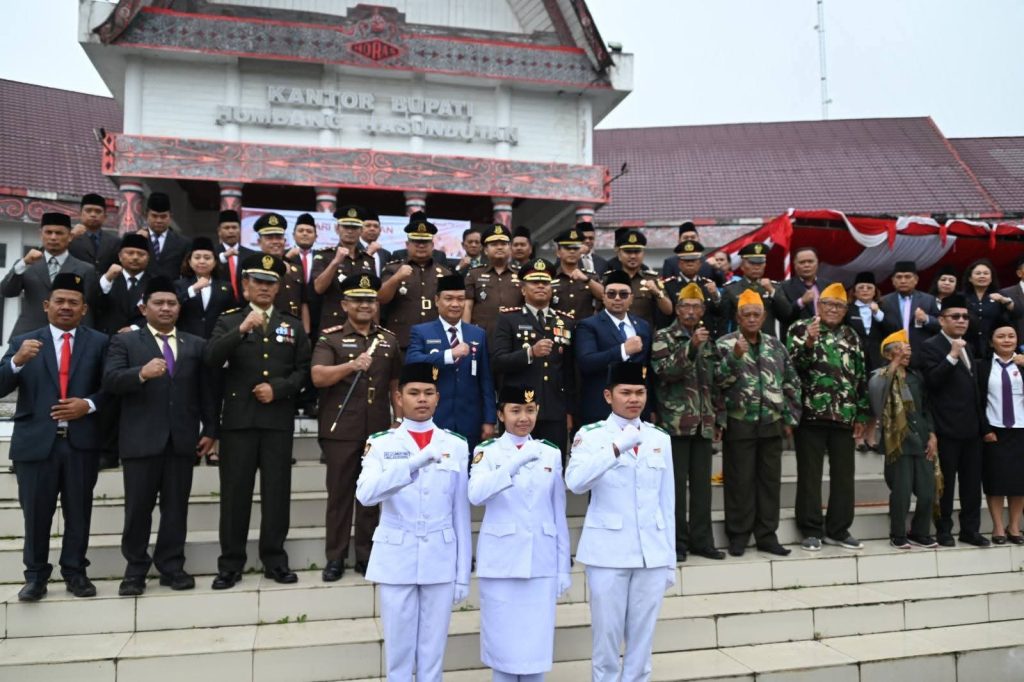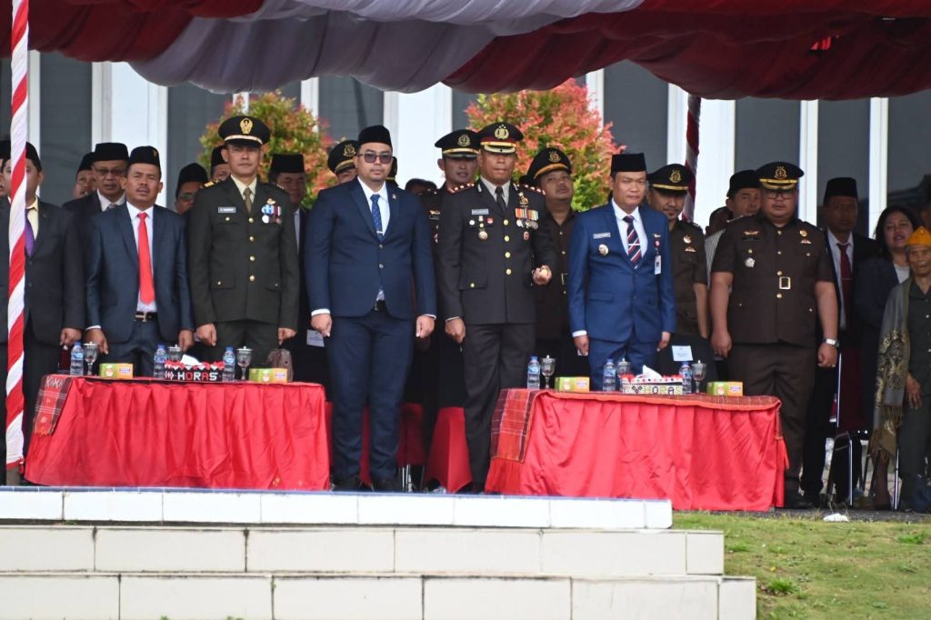 Tampil sebagai Komandan Upacara Ipda Rivo Sitorus dan peserta upacara dari TNI/ Polri, ASN, Kepemudaan dan siswa/siswi.