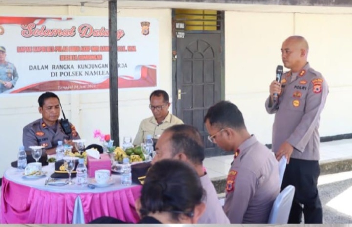 Bahwa rekan-rekan yang ada di Polsek Namlea adalah titik kota dari kota Namlea agar lebih aktif daripada wilayah-wilayah yang lain rekan-rekan patut bersyukur bahwa tingkat kepercayaan masyarakat kepada kita itu semakin hari semakin meningkat dua bulan yang lalu, tingkat kepercayaan masyarakat itu kepada kita ada sekitar 62 % Nah sekarang Sudah 73 % dan terus meningkat terus jangan ciderai kepercayaan yang suda meningkat pada sekarang ini,