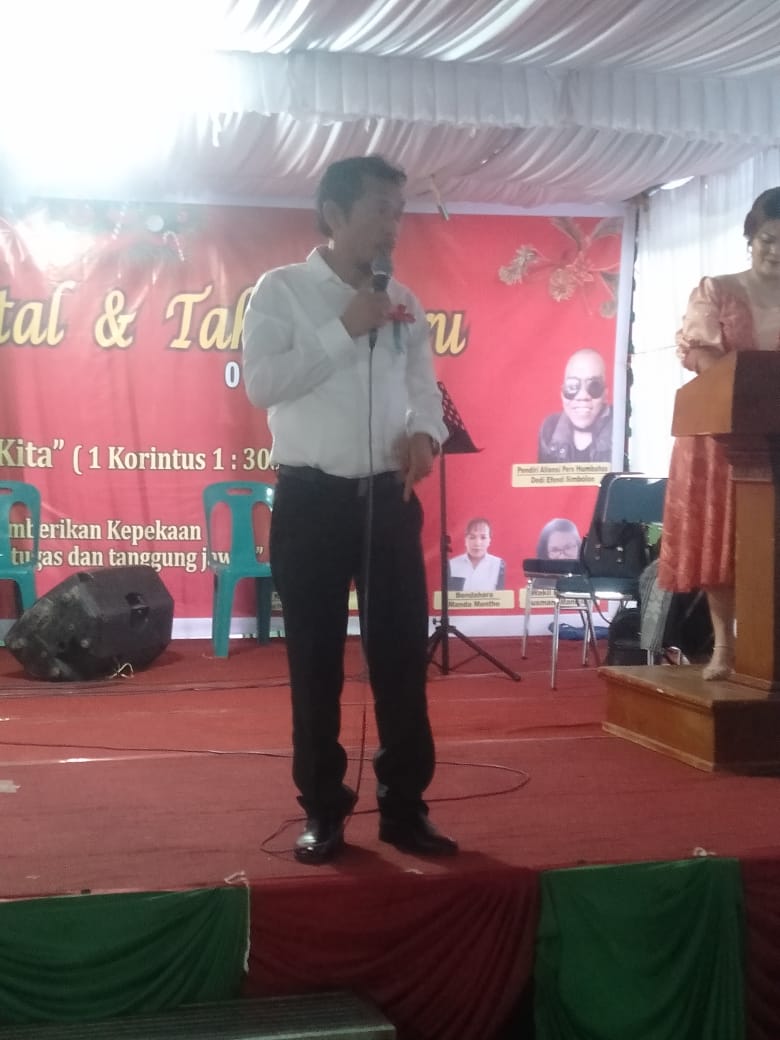 Bupati Humbahas yang diwakili Kadis Kominfo, Batara Franz Siregar dalam sambutannya mengatakan salam hormat sekaligus menyampaikan permohonan maaf dari Bupati tidak bisa hadir karena kesibukan lain sehingga tidak bisa hadir malam ini.