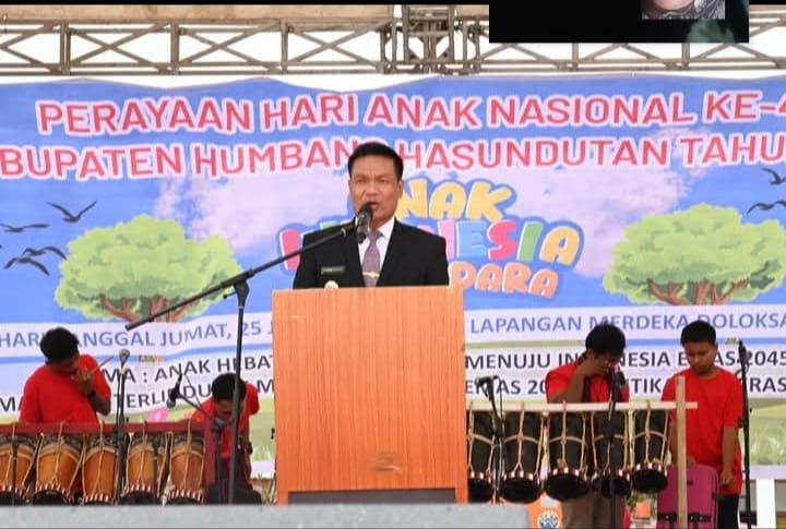 Dalam sambutannya, Bupati Humbahas menegaskan pentingnya momentum Hari Anak Nasional sebagai ajakan untuk melindungi dan memenuhi hak-hak anak, termasuk hak untuk hidup, tumbuh dan berkembang secara layak, serta bebas dari kekerasan dan diskriminasi. Ia menekankan bahwa pembangunan bangsa membutuhkan generasi berkarakter, tidak cukup hanya cerdas dan kompeten.