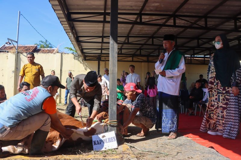 Pihaknya membagikan 500 paket yang berisi 5 kilogram beras dan 1 kilogram daging hewan kurban kepada masyarakat sekitar Aspol Kaliwadas. Penyembelihan hewan kurban tersebut dilaksanakan setelah Salat Idul Adha yang digelar jajaran Polresta Cirebon di Masjid Syarif Hidayatullah Asrama Polisi Kaliwadas, Kecamatan Sumber, Kabupaten Cirebon.
