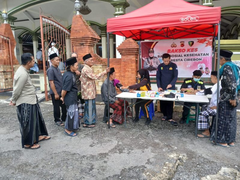 IDN Hari Ini, Cirebon- Polresta Cirebon menggelar Bakti Sosial Kesehatan (Bakso Kes) di Masjid Jami Al Hidayah, Desa Kejuden, Kecamatan Depok, Kabupaten Cieebon, Jumat (23/5/2025).