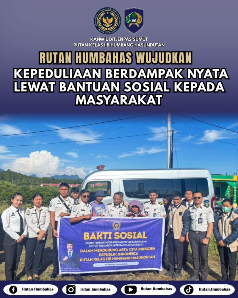IDN Hari Ini, Humbang Hasundutan- Rutan Kelas IIB Humbang Hasundutan kembali tunjukkan kepedulian sosialnya dengan menyalurkan bantuan sosial (bansos) kepada masyarakat di Seputaran Rutan, Rabu, (22/4/2026). Kegiatan diikuti oleh Pejabat Struktural, Staf, CPNS dan Peserta magang.