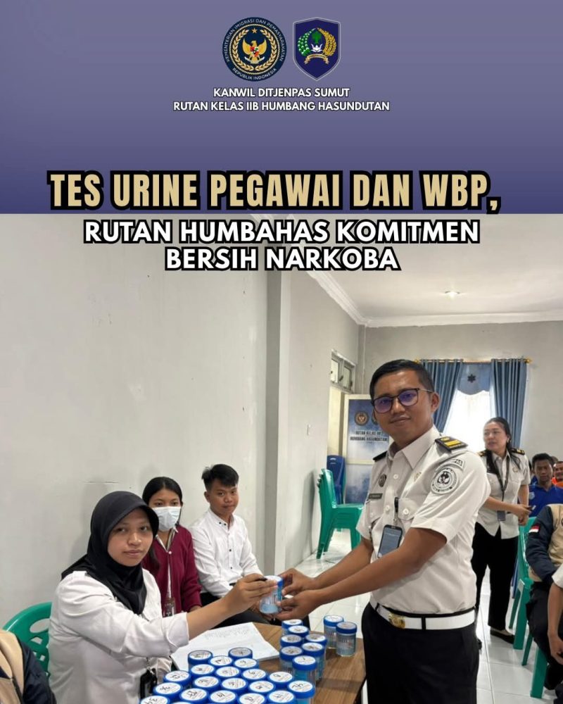 IDN Hari Ini, Humbang Hasundutan- Dalam rangka menyambut Hari Bhakti Pemasyarakatan, Rutan Kelas IIB Humbang Hasundutan melaksanakan kegiatan tes urine bagi pegawai dan Warga Binaan Pemasyarakatan (WBP) sebagai bentuk komitmen dalam menciptakan lingkungan pemasyarakatan yang bersih dari penyalahgunaan narkoba Selasa, (7/4/2026).