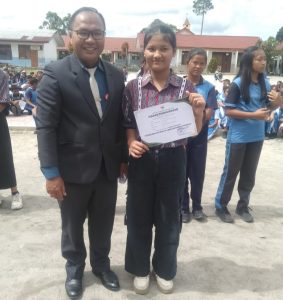 Demikian juga yang lain agar termotivasi untuk meraih prestasi sesuai bidang dan bakat masing-masing, dan jangan lupa berdoa, berbakti pada orangtua dan guru, lanjut Marhilon.