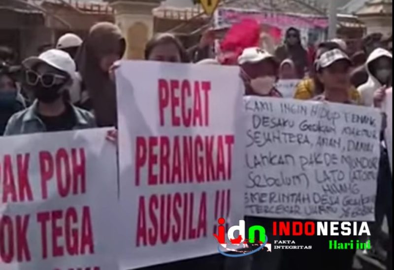 IDN Hari Ini, Tulungagung – Dengan membawa poster dan spanduk bertuliskan kecaman dan protes, warga Desa Gesikan, Kecamatan Pakel, Tulungagung datangi Balai Desa setempat untuk menggelar aksi demo menuntut pencopotan ‘PW’, salah satu oknum perangkat desa yang diduga berbuat asusila, Kamis (14/12/2023).